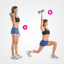2.5 ya da 5 kg ağırlığında bir dambılı sağ elinizle kavrayıp omuzunuzun üzerinde tutun (avuç içiniz içeriye dönük olmalı). Sağ ayağınızla bir adım geri atın ve dizleriniz 90 derecelik bir açı oluşturana kadar vücudunuzu alçaltın (sağ diziniz neredeyse zemine değmeli) ve bu esnada dambılı omuzunuzun üzerine kaldırın (belinizi düz tutmalısınız). Başlangıç pozisyonuna dönerken ağırlığı indirin. Bu bir tekrar demektir. 10-15 tekrar yapın sonra diğer tarafa geçin.