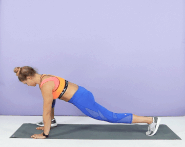 - Downward Dog with alternating calf marches, her bacak için 30 saniye