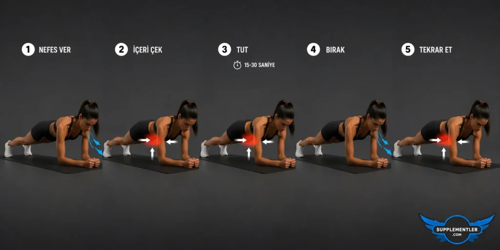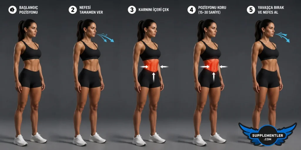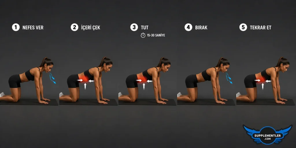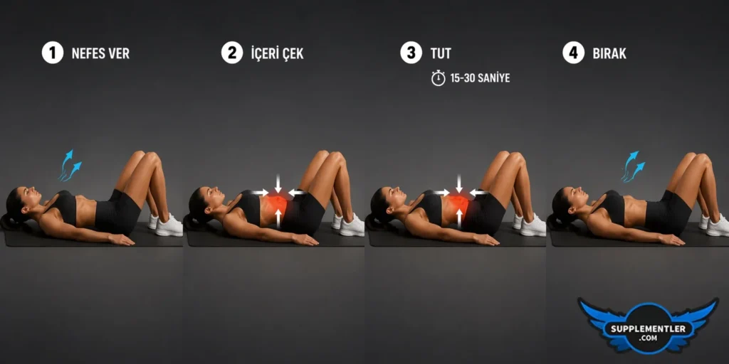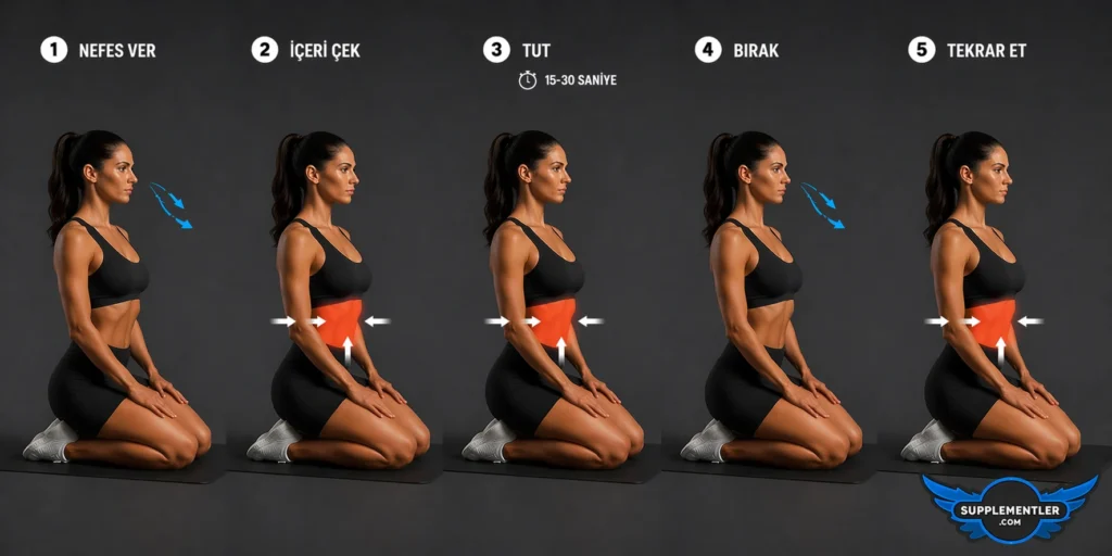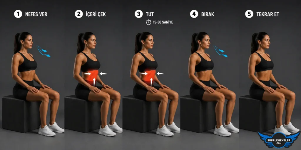 • Göğüs değil, karın içeri çekilmelidir: En sık yapılan hatalardan biri göğsü içe çekmektir. Odak noktası sadece karın olmalıdır.