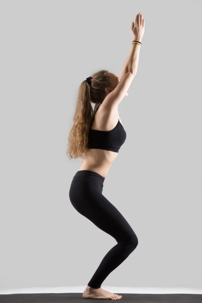 6. Utkatasana (Sandalye Pozu) – Blokla Diz Arası Destek