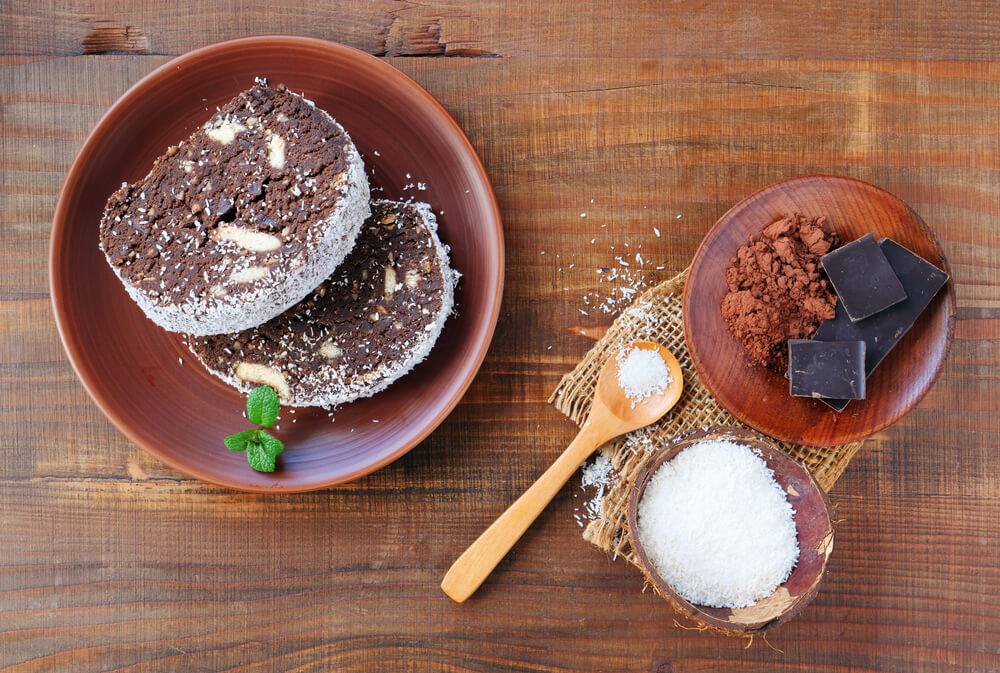 5. Dondurucuda birkaç saat beklettikten sonra pastanızı dilimler halinde Hindistan cevizine bulayın ve servis edin.