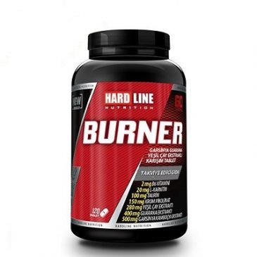 Hardline Burner takviyesinin içinde 120 tablet bulunur. İçerisinde Garsinya Kamboçya, Guarana ve yeşil çay ekstresi bulunur. 20 mg l-karnitinin yanında 100 mg Taurin de içerir. Taurin amino asidinin obeziteye karşı faydaları olabileceği söylenmektedir. Ürünü yüksek tansiyonu olanlar kullanmamalıdır.